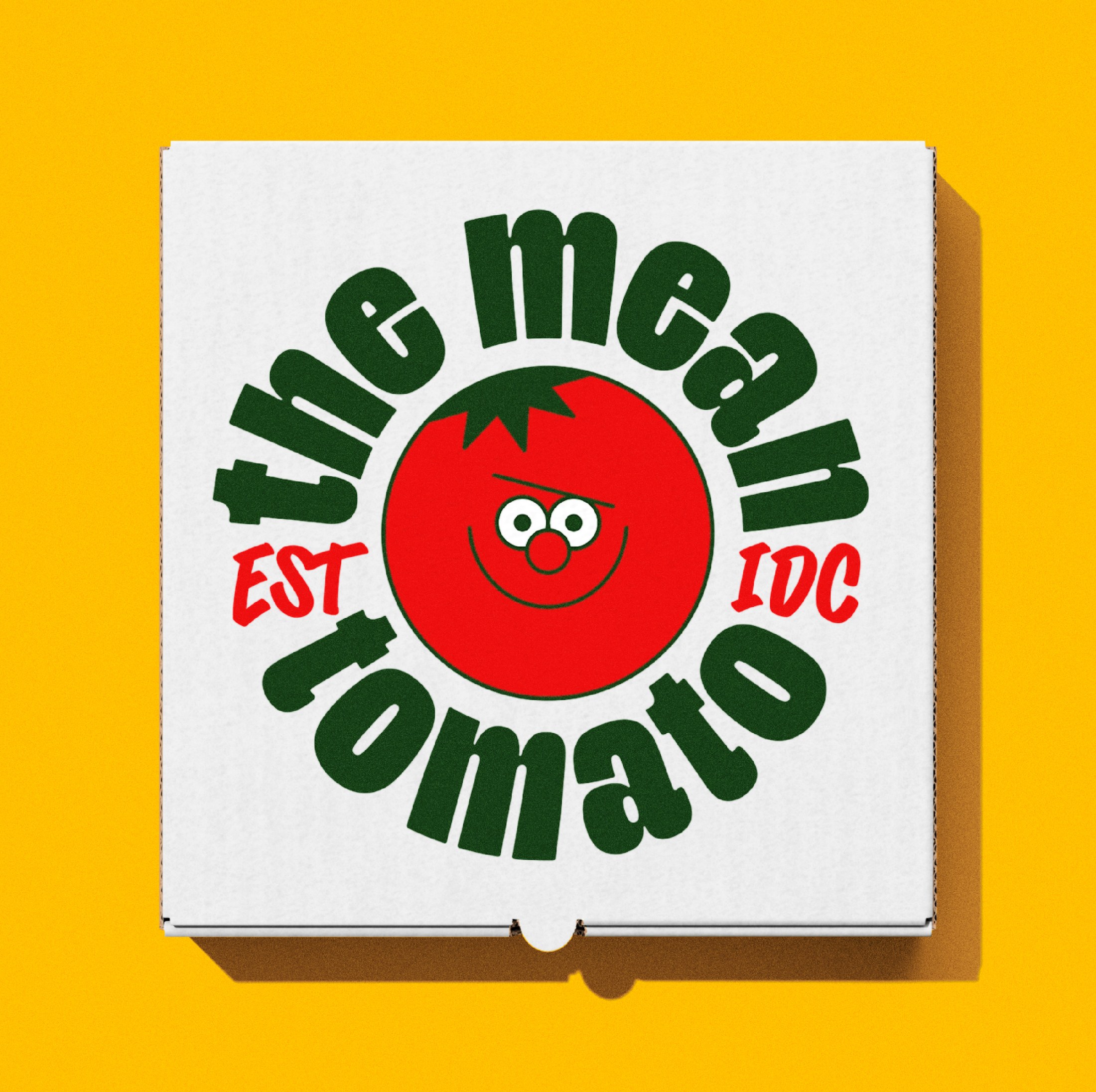 • The Mean Tomato pizza box with roundel logotype